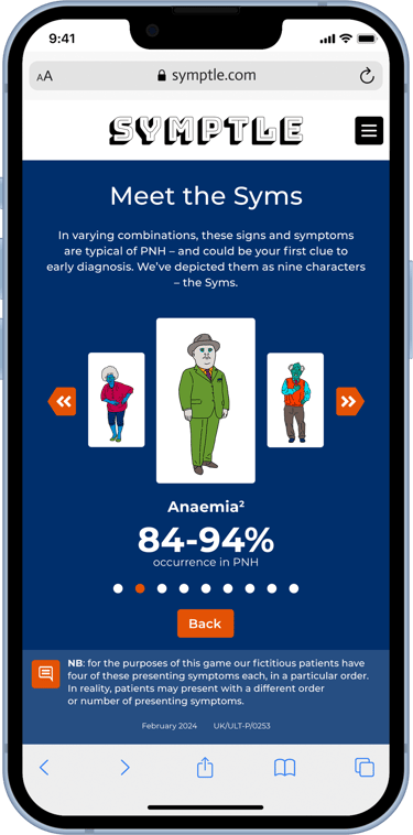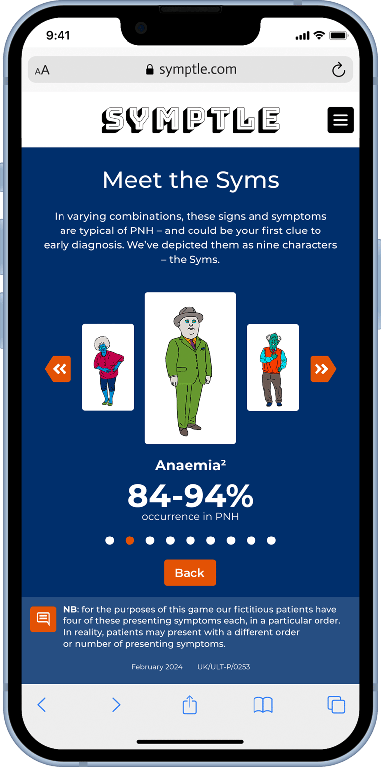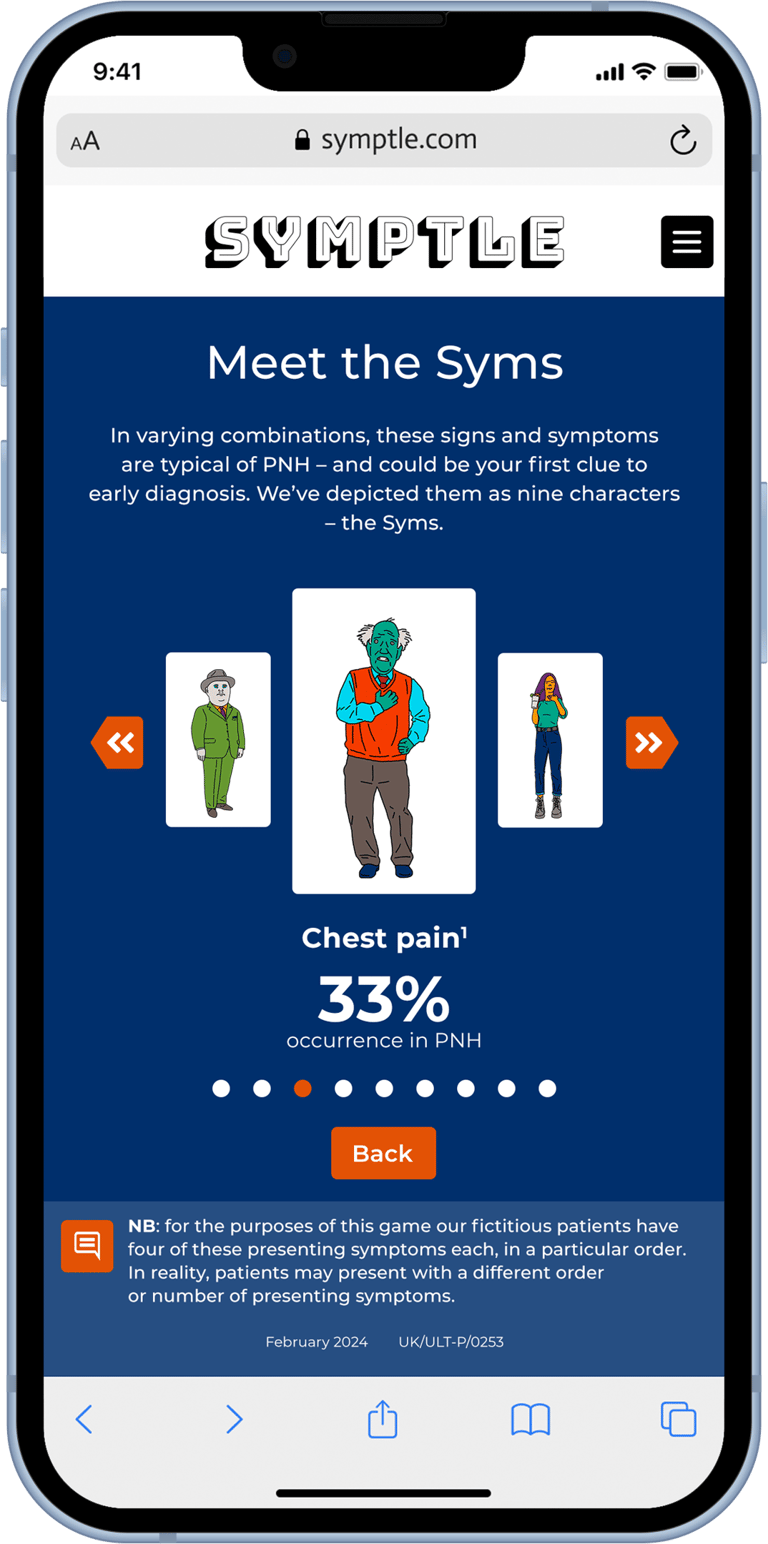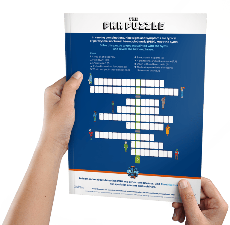 PNH is a rare disease. It’s life-threatening and no two patients present in quite the same way. Early diagnosis is vital, but highly challenging. There are nine signs and symptoms to know about; they can appear in varying combinations, and patients will generally present with only two or three. Diagnosis depends on physicians knowing the symptoms and making the connection with PNH – and then referring the patient to a specialist treatment centre.