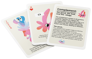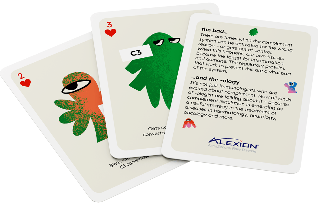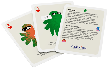 Grab attention – something ‘new’ coming to the gMG field from Alexion. Alexion staff who may not be familiar with the complement system/cascade and who need to be introduced to how Alexion will talk about it in future projects. The session overall is intended as a whistlestop tour of how Alexion will be framing the complement system within their portfolio in the future. Provide event attendees with Complement-branded items to use both in the session and to takeaway to use afterwards
